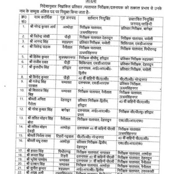 उमेश मलिक समेत उत्तराखंड के 10 इंस्पेक्टर बने सीओ… 15 पुलिस अधिकारियों की नैनीताल समेत तमाम जिलों में हुई तैनाती.. पढ़े आदेश..