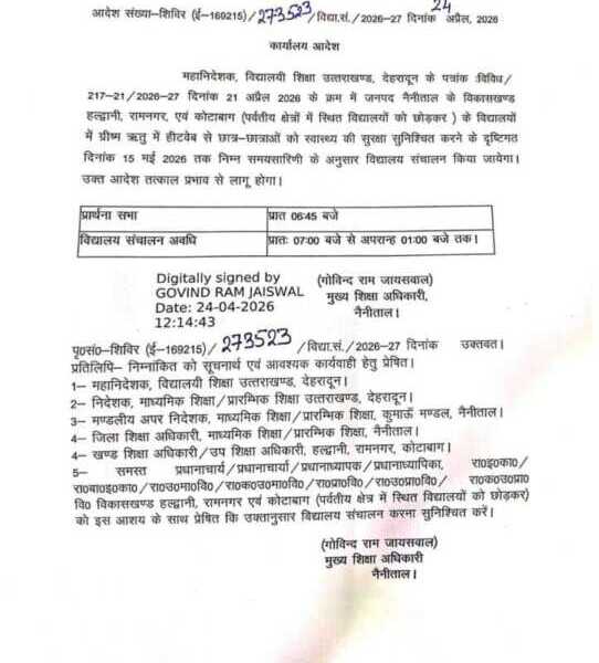 देहरादून। उत्तराखंड विद्यालयी शिक्षा परिषद के सचिव विनोद कुमार सिमल्टी द्वारा जारी आदेश में हाईस्कूल एवं इण्टरमीडिएट परिषदीय परीक्षा वर्ष 2026 एवं...