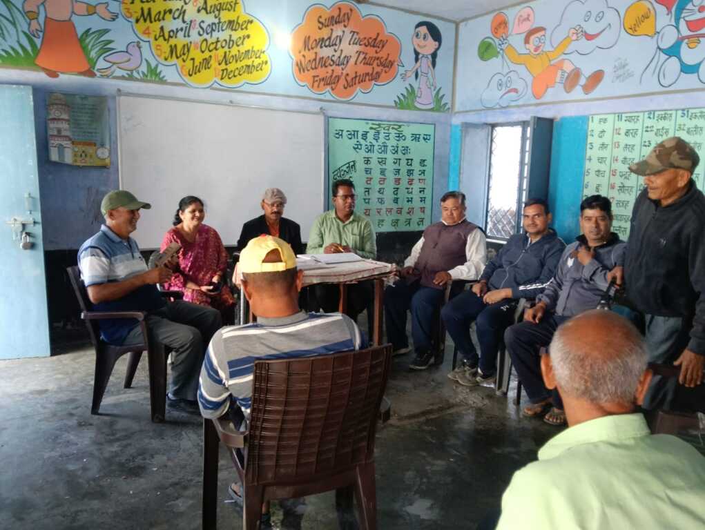फोटो परिचय- बरेली रोड क्षेत्र के ग्राम पंचायत भवन में विरासतन मामलों का निस्तारण करते राजस्व अधिकारी