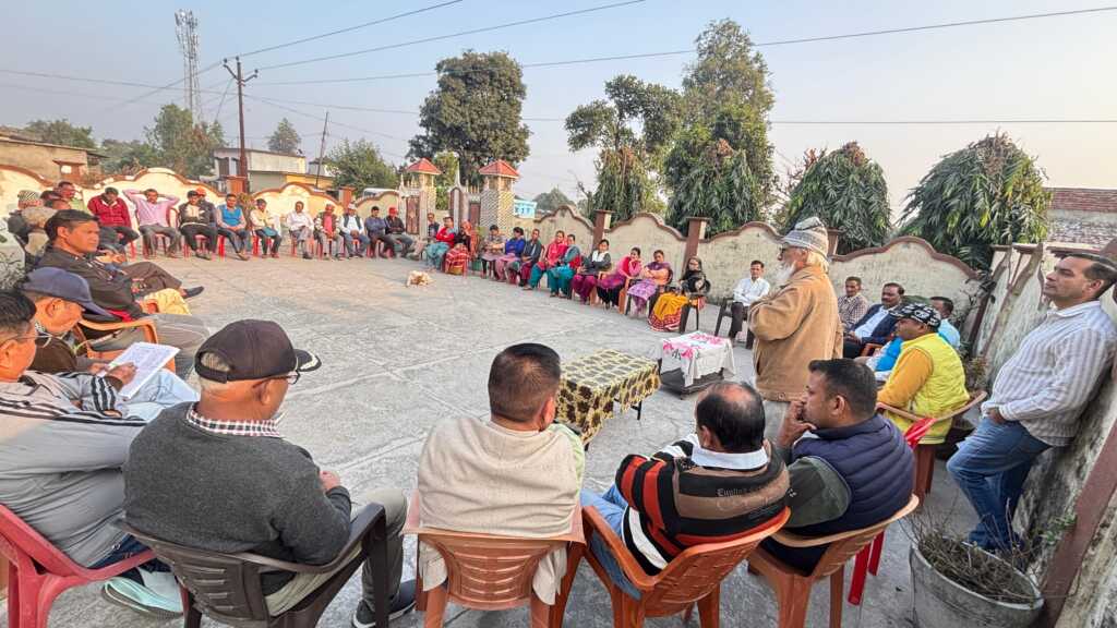 फोटो परिचय- वनाधिकार समिति बिंदुखत्ता की बैठक में मौजूद ग्रामीण