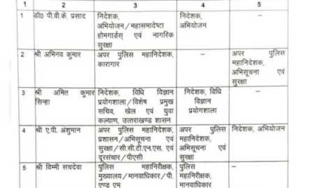 देहरादून। प्रदेश के आईएएस अधिकारियों के स्थानांतरण की सूची जारी हो जाने के बाद आज देर शाम उत्तराखंड शासन द्वारा आईपीएस अधिकारियों...