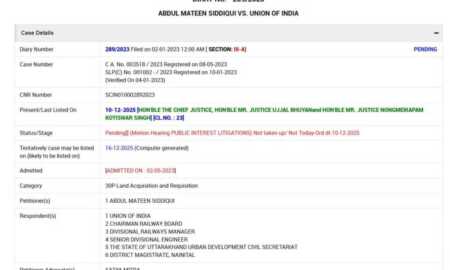 हल्द्वानी के बनभूलपुरा क्षेत्र में रेलवे भूमि पर अतिक्रमण के विवाद को लेकर आज सुप्रीम कोर्ट में सुनवाई निर्धारित है। मामले की...