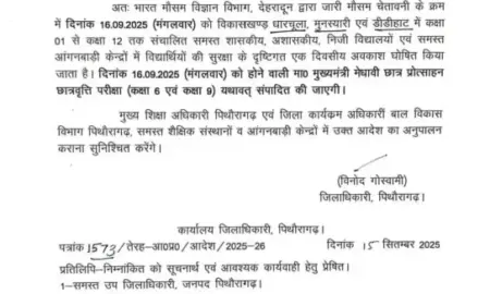 हल्द्वानी। भारत मौसम विज्ञान विभाग, देहरादून द्वारा आज दिनांक 15.09.2025 की रात को को जारी मौसम पूर्वानुमान के अनुसार जनपद नैनीताल और...