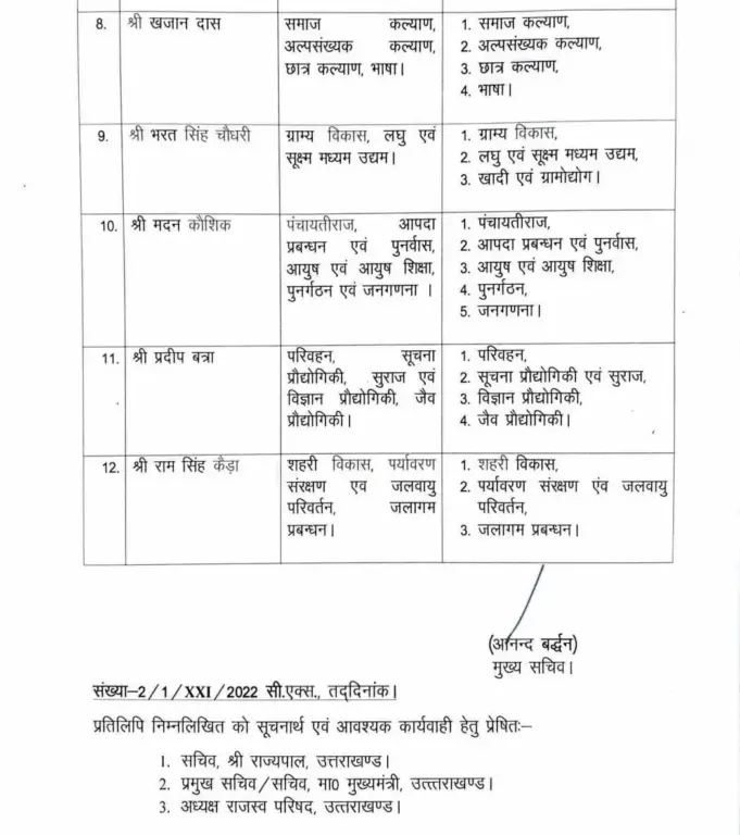 वहीं, अन्य विभागों का बंटवारा मंत्रियों के बीच करते हुए उन्हें उनके-उनके दायित्व सौंपे गए हैं, ताकि विभागीय कार्यों का प्रभावी क्रियान्वयन सुनिश्चित हो सके। सूत्रों के अनुसार इस नए बंटवारे से कार्यों में बेहतर समन्वय स्थापित होगा और विकास योजनाओं को तेजी से धरातल पर उतारा जा सकेगा।