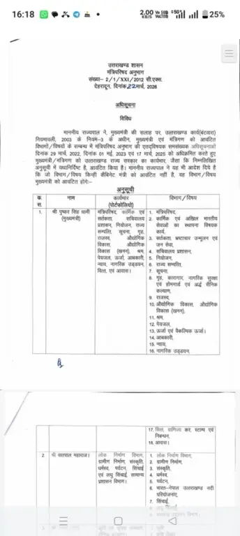 वहीं, अन्य विभागों का बंटवारा मंत्रियों के बीच करते हुए उन्हें उनके-उनके दायित्व सौंपे गए हैं, ताकि विभागीय कार्यों का प्रभावी क्रियान्वयन सुनिश्चित हो सके। सूत्रों के अनुसार इस नए बंटवारे से कार्यों में बेहतर समन्वय स्थापित होगा और विकास योजनाओं को तेजी से धरातल पर उतारा जा सकेगा।