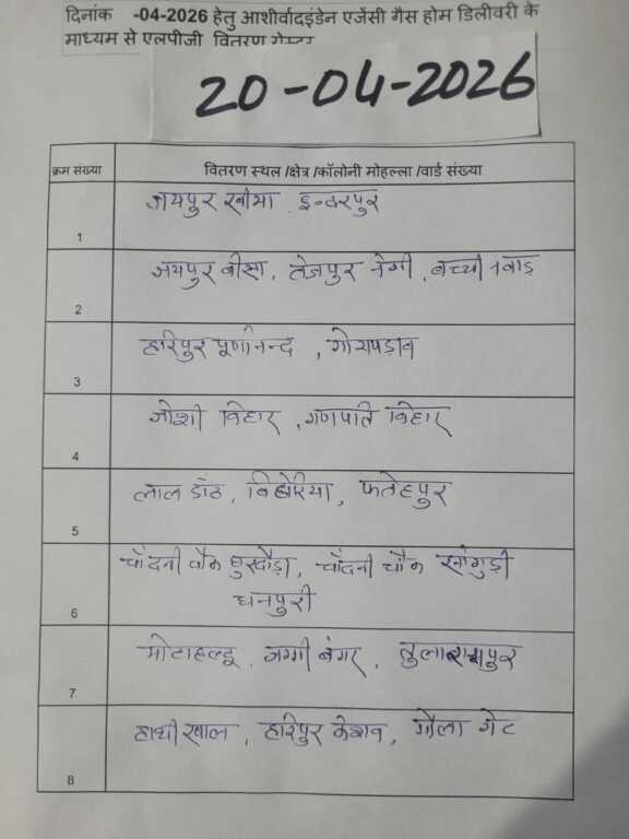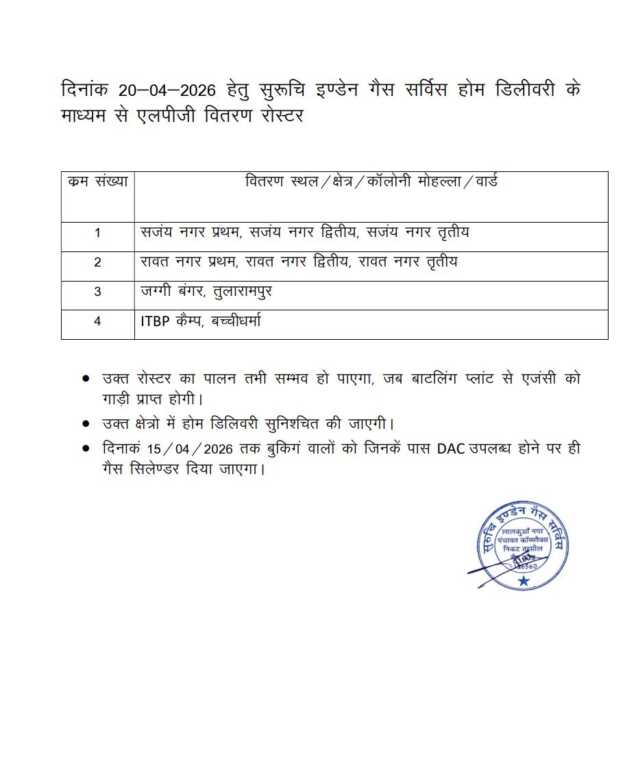 लालकुआं। लालकुआं, बिंदुखत्ता और बरेली रोड में कल इन इलाकों में रसोई गैस के सिलेंडर वितरण किए जाएगें, प्रशासन ने उक्त क्षेत्र की लिस्ट जारी की है। बिंदुखत्ता, हल्दूचौड़ क्षेत्रों में गैस सिलेंडरों का वितरण 15 अप्रैल तक बुकिंग वालों को किया जाएगा।