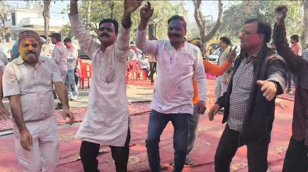 फोटो परिचय- लालकुआं में होली के गीतों में थिरकते क्षेत्रवासी