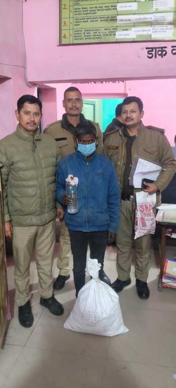 फोटो परिचय- अवैध कच्ची शराब के साथ पकड़ा गया शराब तस्कर
