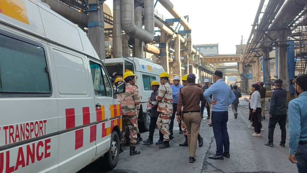 फोटो परिचय- लालकुआं सेंचुरी पेपर मिल में मॉक ड्रिल के दौरान गंभीर रूप से घायल को एंबुलेंस की ओर ले जाते राहत एवं बचाव कर्मी