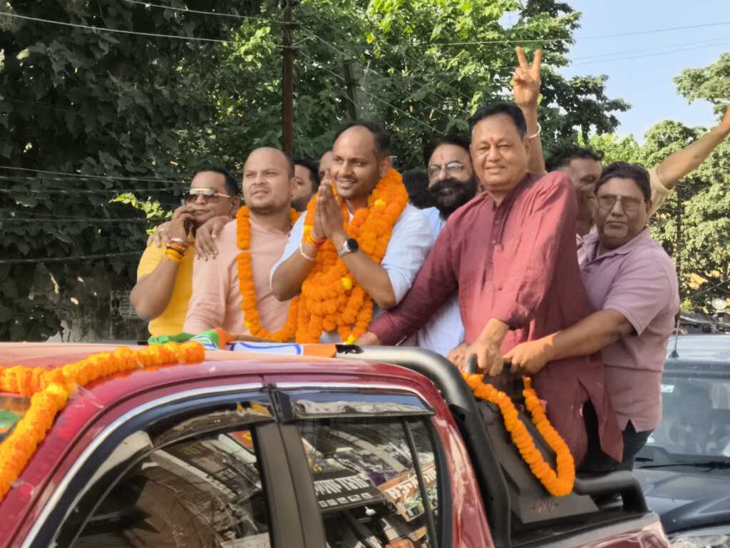 फोटो परिचय- लालकुआं में रैली निकालते भाजपा नेता दीपेंद्र कोश्यारी