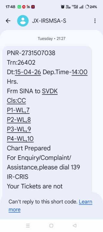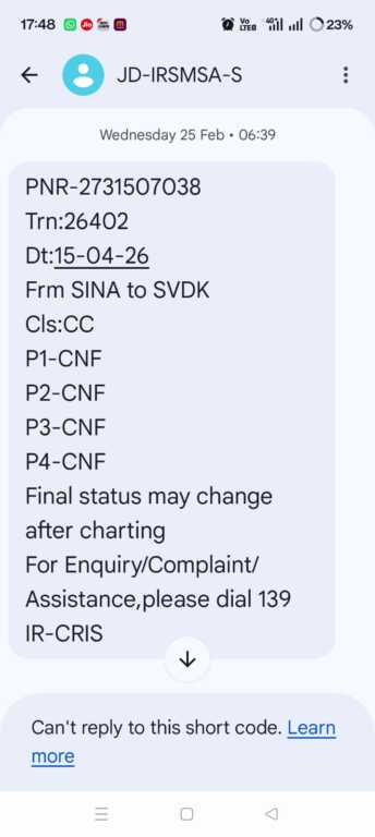फोटो परिचय- रेलवे द्वारा भेजे गए कंफर्म एवं वेटिंग टिकट के मैसेज