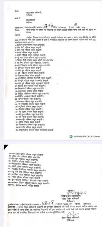 जिलाधिकारी ललित मोहन रयाल के निर्देशों के क्रम में प्रशासन और शिक्षा विभाग की संयुक्त कार्रवाई के बाद अब बड़ा एक्शन लिया गया है। जांच में निजी स्कूलों और बुक सेलर्स के गठजोड़ का खुलासा होने के बाद मुख्य शिक्षा अधिकारी गोविंद राम जायसवाल ने 46 निजी स्कूलों को कारण बताओ नोटिस जारी कर दिया है।