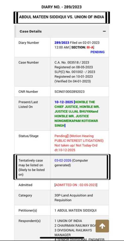 हल्द्वानी। सुप्रीम कोर्ट में बनभूलपुरा रेलवे भूमि प्रकरण की सुनवाई फिर से टल गई है। पूर्व में यह तिथि 16 दिसंबर तय थी, अब सुप्रीम कोर्ट की अधिकृत साइड में सनी की तारीख शीतकालीन अवकाश के बाद 3 फरवरी 2026 नई तारीख के आने से मामला कड़ाके की सर्दी के बीच और खिच गया है, अब 3 फरवरी यानी ठंड का प्रभाव कुछ काम हो जाएगा सुप्रीम कोर्ट में सनी की जानी फिक्स है।