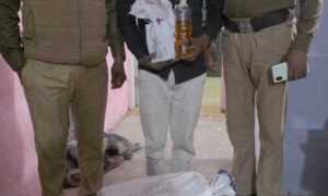 फोटो परिचय- पुलिस द्वारा गिरफ्तार किया गया शराब तस्कर
