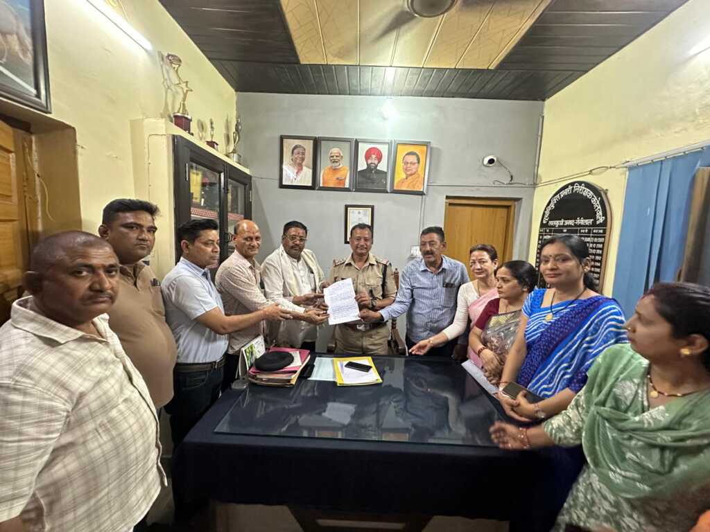 फोटो परिचय- पीयूष जोशी की रिहाई की मांग को लेकर कोतवाल को ज्ञापन सौंपते जनप्रतिनिधि